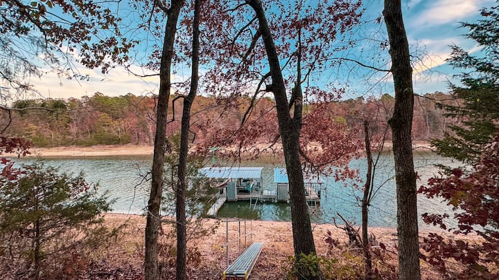 Welcome to Heart Haven: a lakefront retreat nestled in the trees on Beaver Lake. This newly built custom designed cabin will quickly become your favorite nature escape. With gorgeous Ozark mountain views, a quick hike to the lake, jacuzzi spa on the deck, a shared dock, pickleball courts & plenty of space for large groups and families, the Lodge has everything you need for adventure and R&R. Come for a simple stay or all inclusive with optional upgrades like boat rental, garden to table meals, SUP yoga, Efoil lessons, pilates on dock, or massage!