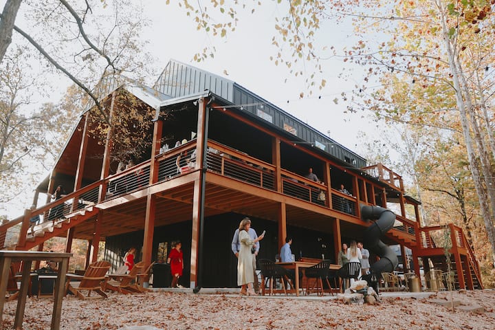 Heart Haven is located in the heart of the Ozarks, just minutes away from Hobbs State Park, War Eagle Cavern, War Eagle Mill, and endless hikes, bike trails, and adventures with a plethora of on site amenities and things to do like paddle boarding, hiking, lake access, shipping container pool on the deck, hot tub, sauna, and even a lakeside amphitheater.