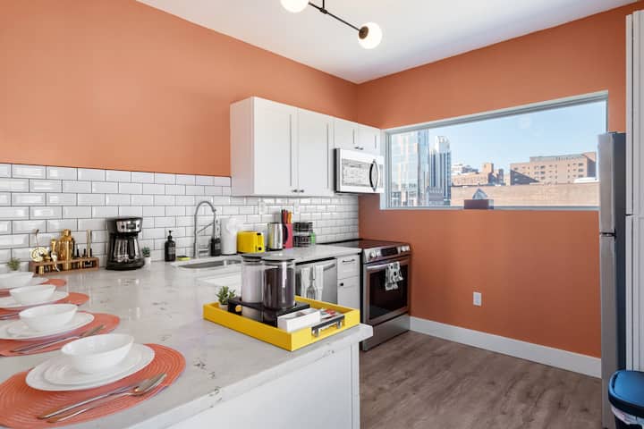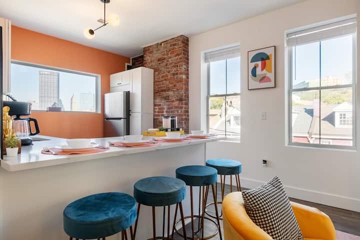 This fully renovated 1-bedroom apartment combines modern comfort with funky charm. Enjoy exposed brick walls, stylish decor, and brand-new appliances. Relax in the cozy living area or retreat to the plush bedroom for a restful sleep. Located in the heart of Pittsburgh, you're just minutes from downtown attractions, restaurants, and nightlife. Book now for a unique and unforgettable stay .
