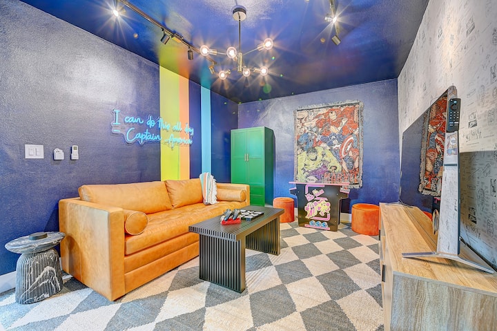 🛡 Avengers Game Room: Detached suite with queen sleeper sofa, Smart TV, climate control, and vintage arcade games