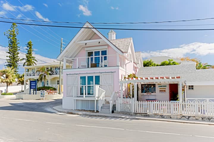 Pink Loft is located on beautiful Governor's Harbour Bay overlooking Cupid's Cay. On the upper floor of a renovated building, the loft has a fully equipped kitchen, spacious bathroom and is beautifully furnished in lively tropical colors and crisp new furniture.