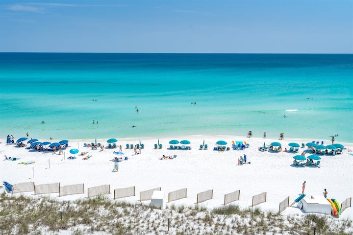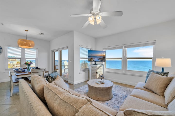 ✹ BEACHFRONT, 5th Floor, Corner-Unit, PENTHOUSE Condo offers expansive views through large windows and a private balcony overlooking the sugary white sands and crystal clear waters of the Emerald Coast