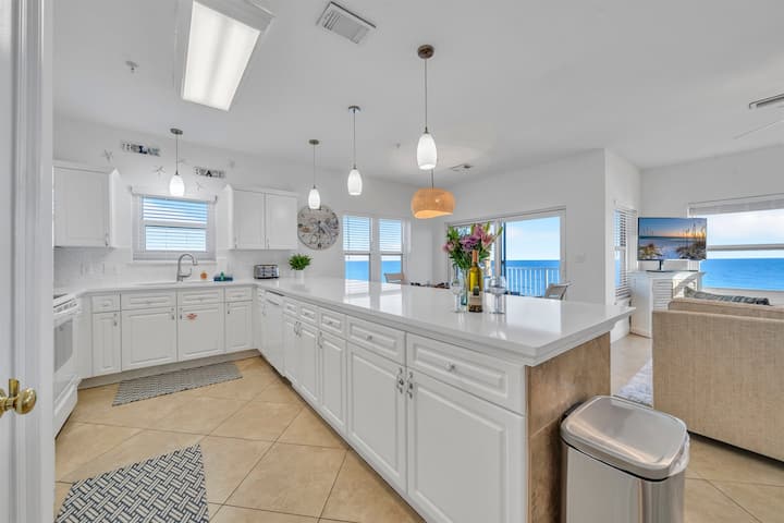 ✹ Large, Open Living Space with Stunning Gulf Views: Updated Kitchen with Counter-Height Seating for 6, Gulf View Dining Table with seating for 8, Large Sectional Sofa with Smart TV, and Private Balcony
