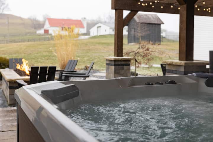 Step into a piece of history at The Garfield Inn, a beautifully restored 1869 colonial farmhouse blending original charm with modern luxuries. Indulge in hotel-quality bedding and a gourmet kitchen, then unwind in the hot tub while soaking in the picturesque Ohio Valley landscape of rolling hills and farmland. Experience a perfect retreat where historic elegance meets contemporary comfort.