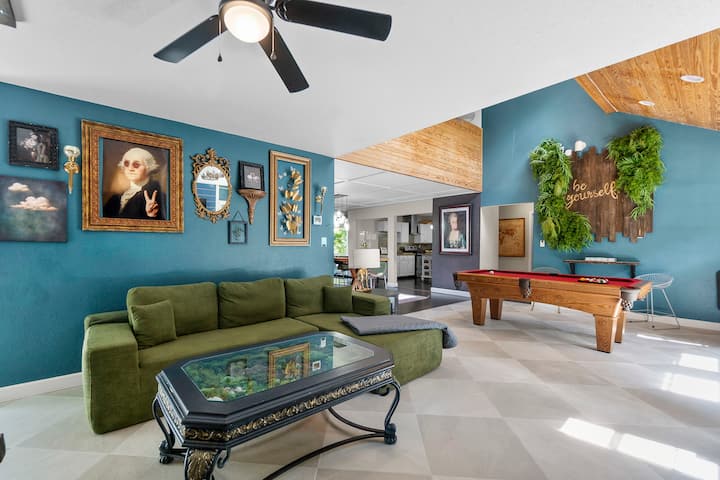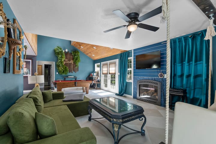 Welcome to your getaway! Spacious home features 2 king beds with 10” memory foam mattresses, ensuring a restful stay. Enjoy endless fun w/ game areas including pool, putt-putt, air hockey, foosball, shuffleboard, & more.
