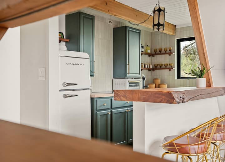 Welcome to the Artist's A Frame by Kasama Cabins. This 2BR 1Bath A-Frame is nestled in the charming town of Running Springs, between Big Bear and Lake Arrowhead, less than 2 hours from LA.