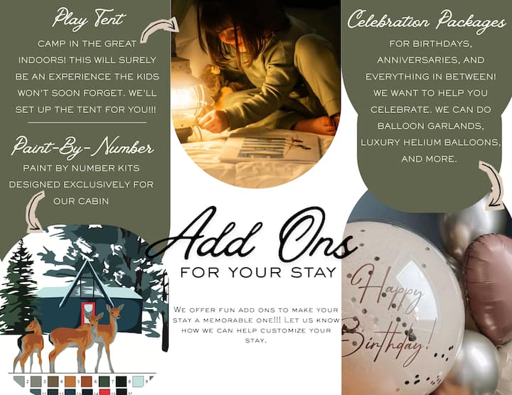 ✔ Additional add-ons: Canvas play tent for kids & Celebration packages
