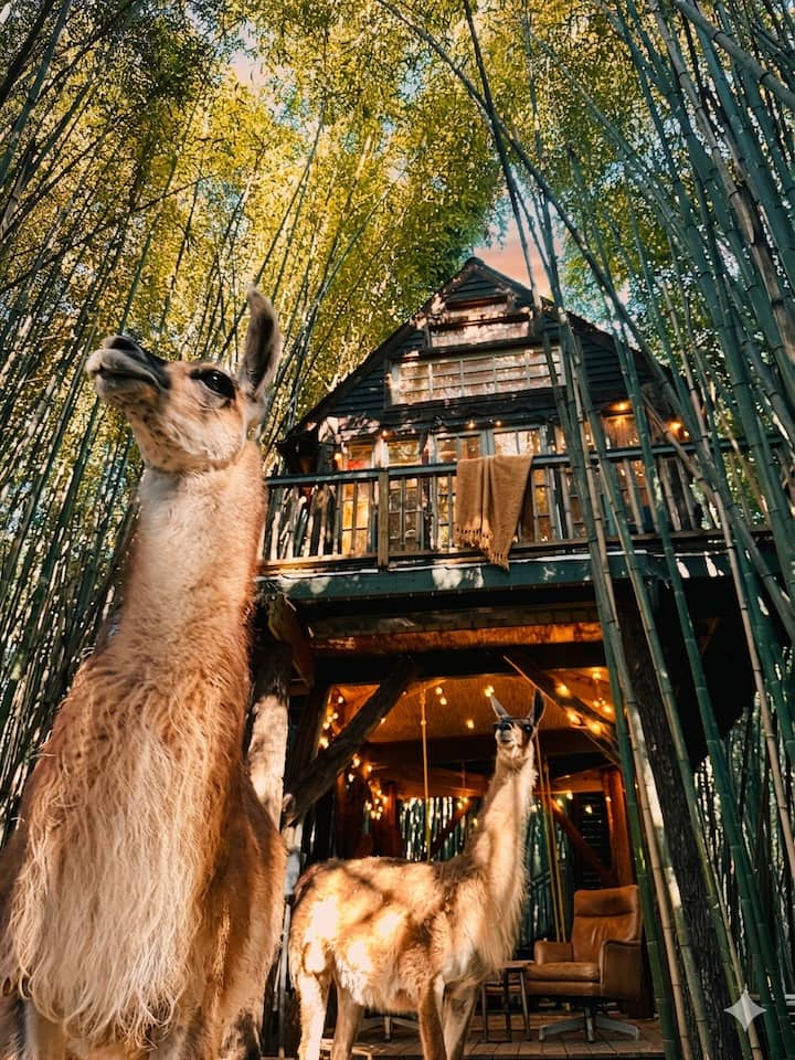 Celebrated on Netflix’s “Worlds Most Amazing Vacation Rentals” & “Love is Blind," we are a working rescue farm. Watch llamas and alpacas wander; hear roosters crow, from 15 up, in Atlanta. You will be living in the middle of the animals, in the bamboo, in the treehouse. We book film, weddings, photography for SPECIAL RATES. Check out our beautiful Cottages too, on airbnb. NO KIDS UNDER 12-safety first. No pets as we provide them!