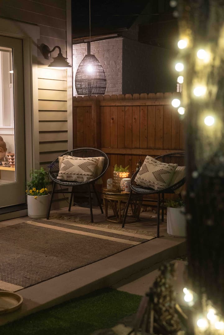 •Backyard (off of the kitchen) - large, fenced-in, private patio serene oasis, yard is artificial canine specific turf (nontoxic), floral landscape and warm cafe lighting for al-fresco dining