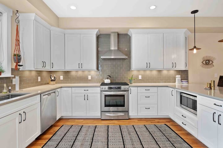 • Plenty of storage/drawer/cabinet space for guests, and self-care amenities included (all natural, high quality, sulfate free shampoo & conditioner, body wash, body lotion, hair dryer, curling iron, wash clothes, extra towels, etc).
