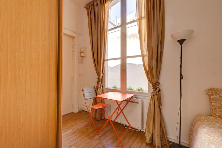 Small studio in the exclusive 6ème arrondissement with private kitchen, shower, toilet. Elegant entrance, located close to the prestigious Hotel Lutetia, Le Bon Marché shopping center, Poilane bakery, historical Café de Flore and Les Deux Magots. 5 minute walk to the Luxembourg garden.