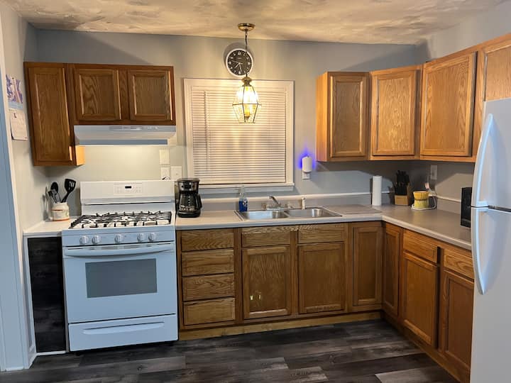 We have three friendly dogs that go outside, while you’re here they’ll be kept in a pen outside but if one should find his way down to your house don’t be alarmed just text me and let me know.