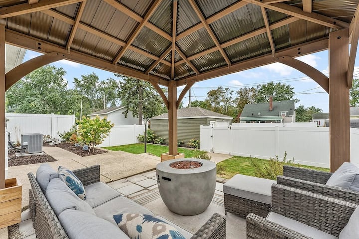 We’ve equipped the house with new appliances, dishes, and towels, all available for your use. The fenced-in backyard features plenty of space with a lovely gazebo, BBQ grill, and gas firepit for your enjoyment.