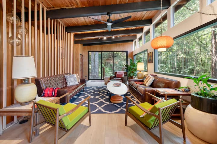 Welcome to your peaceful redwood retreat in Camp Meeker - a retro-modern cabin designed for rest, connection, and nature-filled days.