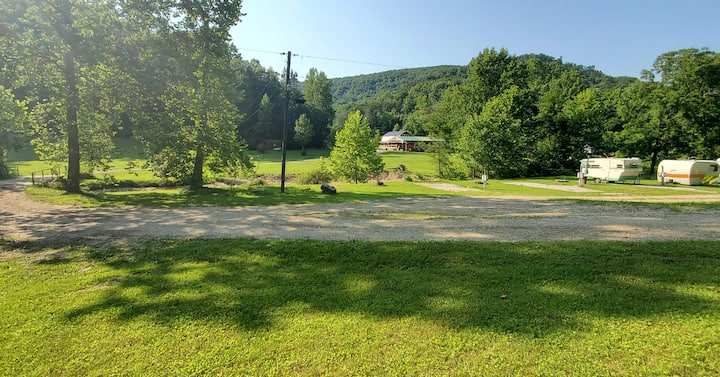 Creekside camping with electric and water (NO SEWER OR DUMP STATION - YOU MUST HAVE HOLDING TANKS). Spaces are small so sites are best suited for campers that are 25' or less or a maximum of two 4-person tents. 30 amp / 50 amp / 110 volt plugs available. Nearby outhouse and seasonal bath house available. Be sure to read ALL the listing details below so you know what to expect. NO PETS or ESAs - NO EXCEPTIONS.