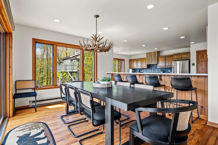 The open-concept kitchen and dining area make mealtime a breeze, with seating for every guest. Cook up a feast while never missing a moment of conversation, and enjoy meals together while overlooking the mountains.