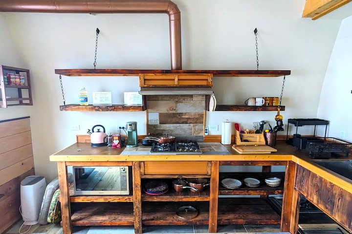 Welcome to Belle's Bunkhouse, an inspired yet cozy and unique arched cabin.