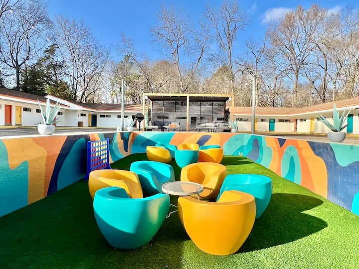 Enjoy our stylish outdoor patio and lounge area, perfect for unwinding or socializing after a day of exploring. Located conveniently downtown, you'll have the best of Starkville’s dining and nightlife right at your doorstep.