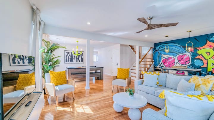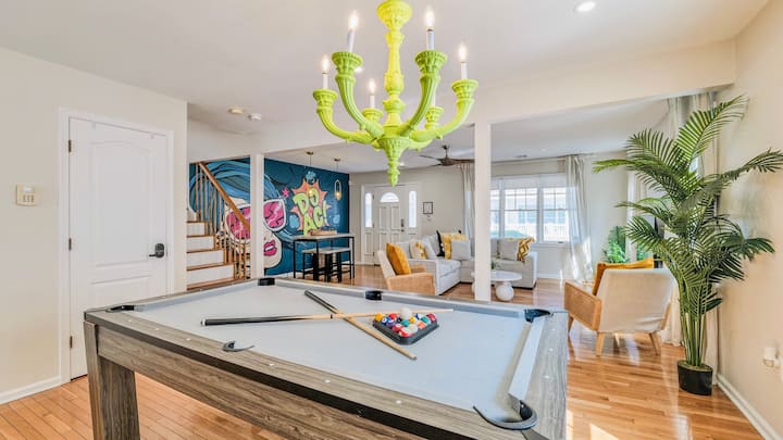 Welcome to your Atlantic City getaway—just steps from boardwalk and a few minutes from the beach! This stylish 4-bedroom, 3-bath home blends designer touches with cozy comfort. Perfect for families or groups, the home features a spacious living space, a loft bedroom with water views, a private backyard hangout, and a game-ready pool table for indoor fun. Whether you're soaking up the sun, exploring the boardwalk, or relaxing in your coastal-chic home away from home, this spot has it all.