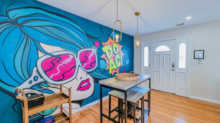 This uniquely designed home is an amazing place to create memorable experiences with your friends or spend a wonderful getaway with your family. The home is professionally designed; It features several murals and works of art by local and international artists.