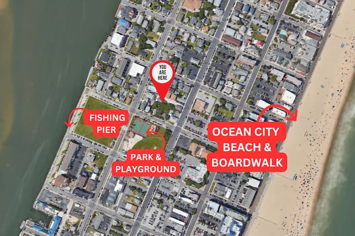 ⇢ Prime location – short walk to the beach, boardwalk, fishing pier, shops, & restaurants