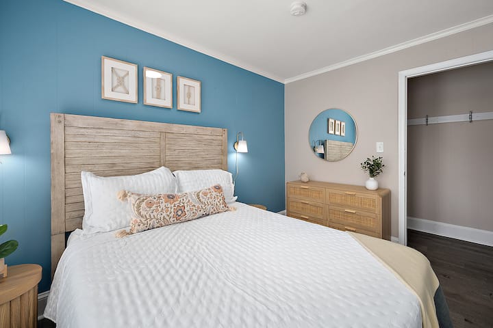 The two inviting bedrooms at Casa Rosa provide a peaceful and cozy retreat, thoughtfully designed to bring comfort and relaxation after a day of exploring Ocean City. Both bedrooms feature queen-sized beds and quaint, well-appointed beachy decor.