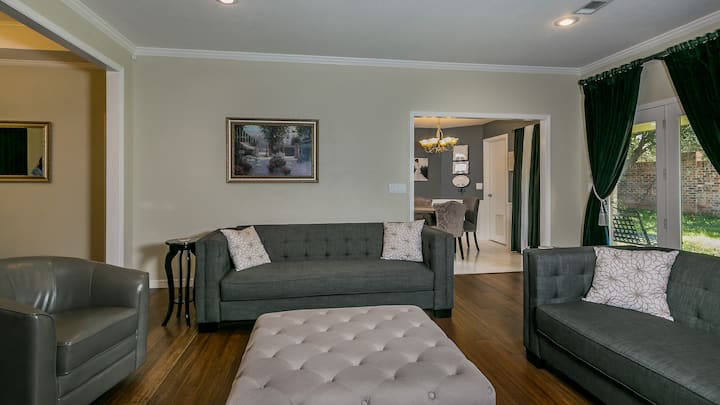 Located in quiet neighborhood in between 2 golf courses. Feels like you are outside of the city despite being only minutes from I40, shopping, restaurants, downtown and the medical district.