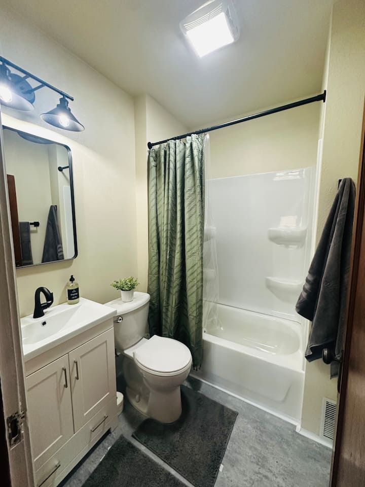 My husband, Kollin, works in the construction field and occasionally renovates homes on his “off time” this home was renovated by him!