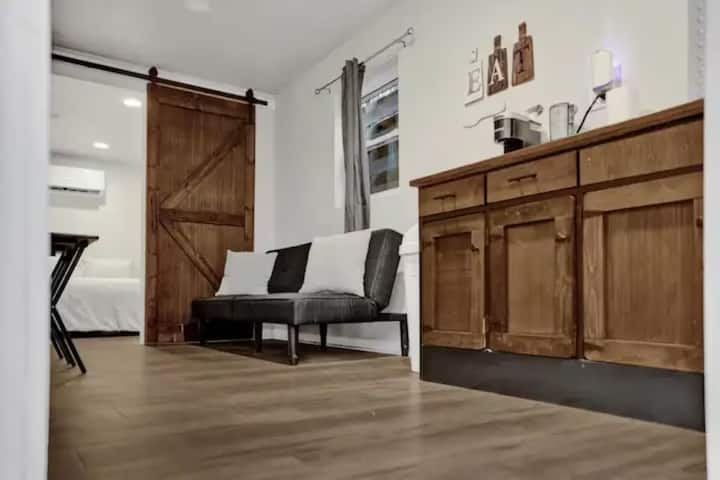 The shipping container home is thoughtfully designed with top-notch furniture and numerous modern features. It boasts 1 bedroom, a well-maintained bathroom, a living area, and a fully equipped kitchen. This container home is centrally located, providing easy access to various attractions and amenities in Athens, AL, making it the perfect destination for a relaxing vacation.