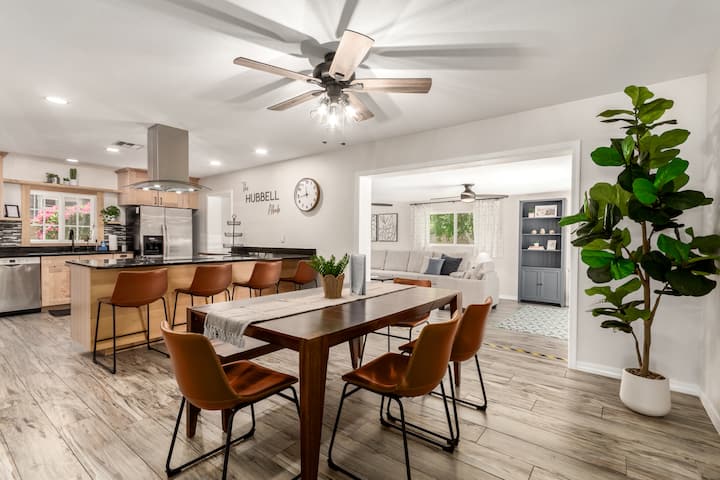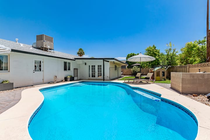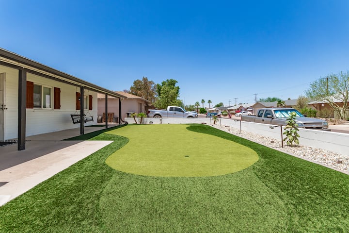 Welcome to "The Hubbell Abode!" This family-friendly 4BR/2BA home offers plenty of space for comfortable extended stays of 30+ days. Well-equipped for families with 2 living rooms, full work-from-home set up, washer/dryer, and yard with swimming pool & custom putting green. Located just minutes from Old Town Scottsdale & walking distance to park. This is a new listing; please read our *5-STAR* reviews on our other listings and you can be assured of an excellent experience staying with us!