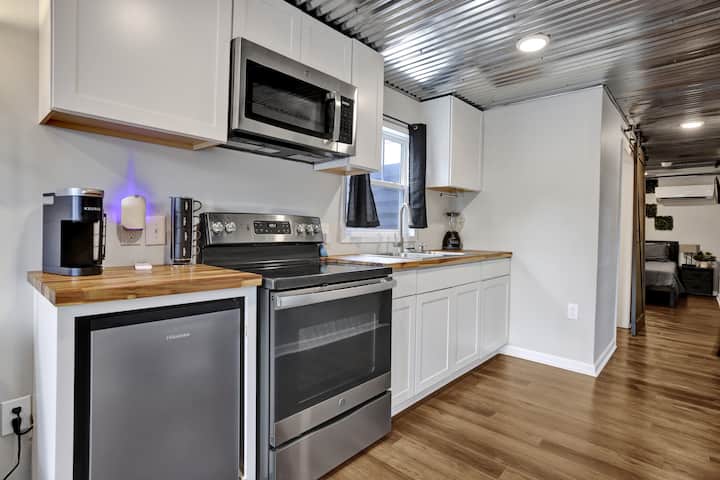 The shipping container home is thoughtfully designed with top-notch furniture and numerous modern features. It boasts 1 bedroom, a well-maintained bathroom, a living area, and a fully equipped kitchen. This container home is centrally located, providing easy access to various attractions and amenities in Athens, AL, making it the perfect destination for a relaxing vacation.