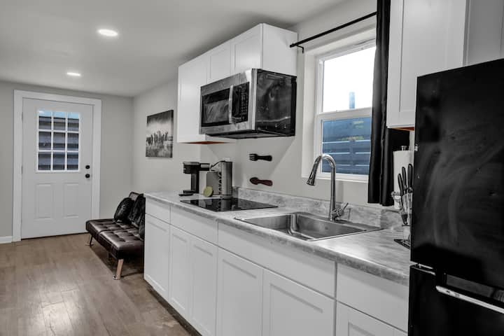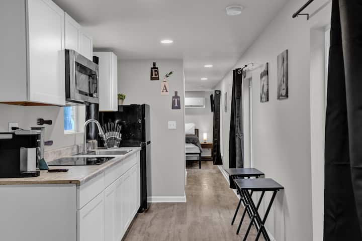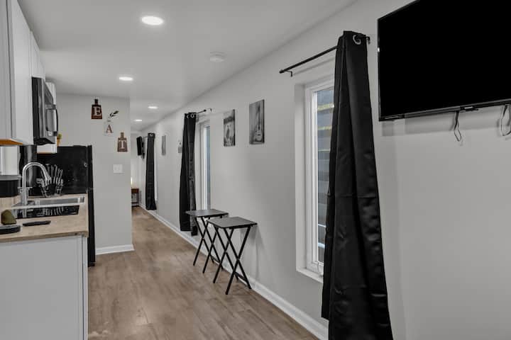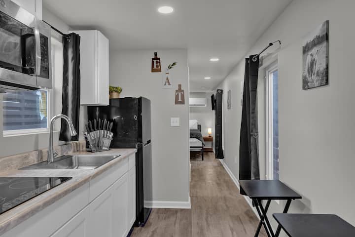 Welcome to the EcoCrate—a sleek, up-cycled container home in Athens, AL. Enjoy 1 cozy bedroom, a stylish bath, full kitchen, laundry, and a bright living area. Thoughtfully designed with modern touches, it offers comfort and charm. Relax by the shared pool, grill in the cookout area, and explore nearby attractions. A perfect glamping-style retreat for couples, solo travelers, or long-term guests.
