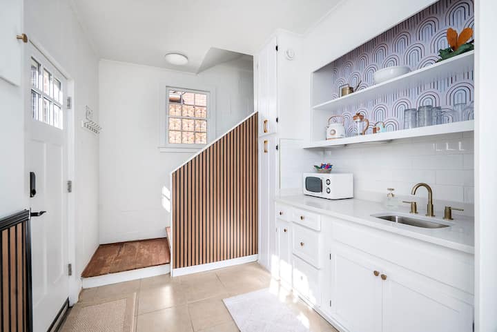 UPSTAIRS: king bed, Roku TV, desk, & newly renovated bathroom with huge walk-in shower.