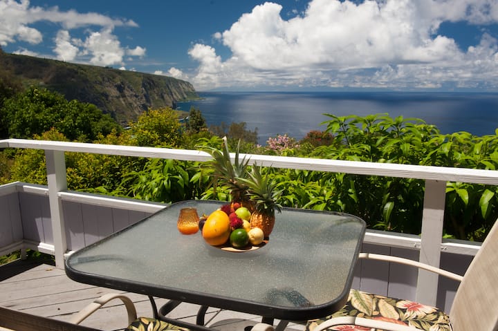 All cottages have WIFi wireless internet and phone is available at main house for local calls. All units have a kitchen or kitchenette with just about anything you would need to make nice meals and some condiments including salt and pepper, coffee, teas,ceiling fans, towels, linens. Each unit/cottage has a private deck/lanai with great views to the ocean/cliffs.