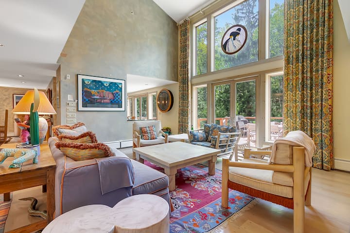 Up the stairs to the main floor. This floor is a show stopper!! With decorations, artwork and furniture straight out of the Midwest and Costa Rica you'll be transported out of Southern, VT in an instant.
