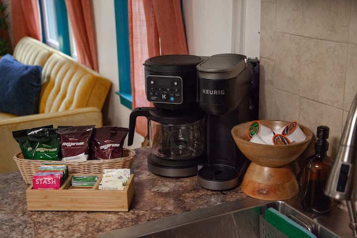 Start your morning right with the french press and drip coffee maker.