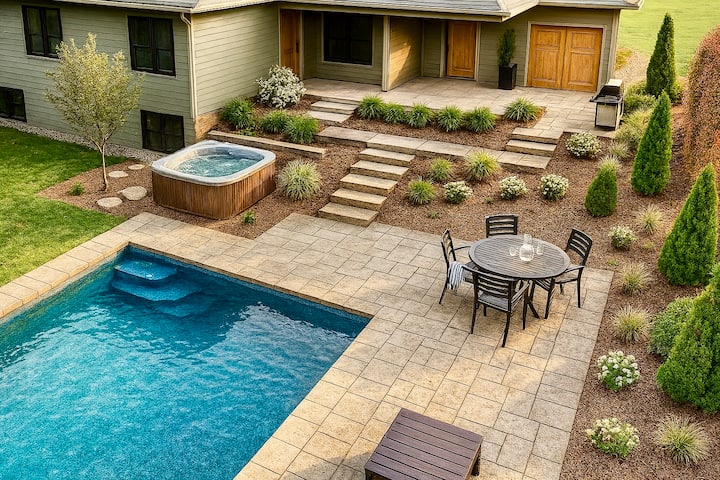 Construction on this house (including pool) is now complete. We will begin welcoming guests in March 2026. Be among the first to enjoy this brand‑new home during our preview stay period before Memorial Day. The interior is fully finished and beautiful, while outdoor landscaping, patio, and courtyard are still being completed. During this time, the yard will have rough grading with limited grass. The screened‑in porch will be open and furnished in May, and the pool and hot tub open Memorial Day—just in time for summer! Discounted rates make this the perfect opportunity to experience this stunning property at exceptional value. Some photos included are renderings of space and not actual photos. Progress photos will be frequently updated.
