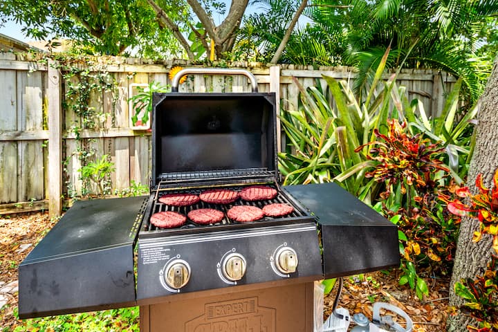 Why pay outrageous prices at crowded Florida beaches when you can enjoy the same sun and sand at our hidden gem? With a track record of happy guests, your beach getaway is not only fabulous but also a great value. You'll LOVE floating in our pool and lounging under the palms. This cozy home is for beach lovers who also want to walk to restaurants, music and parks. Minutes from golf, fishing, boating. You are greeted with treats, king bed & parking. Zero cleaning chores at checkout. Book now!