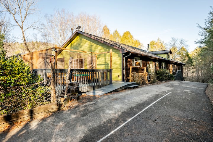 Nestled in the mountains near the Nantahala National Forest, our retreat is more than a stay it’s an experience. Fall asleep to the sound of the creek flowing through the property and wake up with our free-roaming donkeys, goats, geese, chickens, ducks, and roosters.