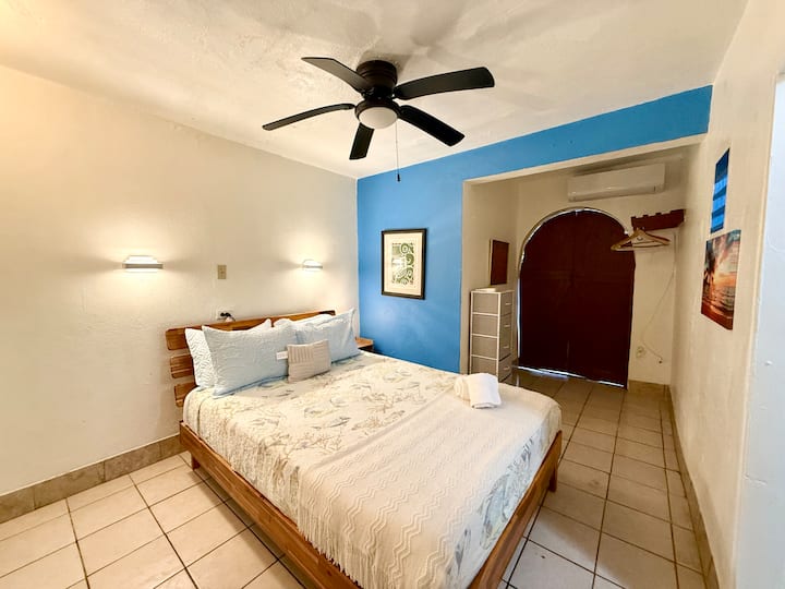 Beat the heat with the AC and ceiling fan.