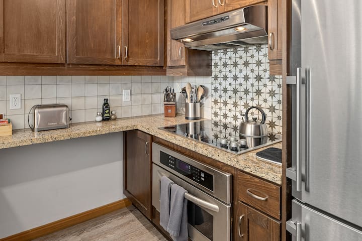 Modern 1BR Retreat with Fireplace & Mountain Views