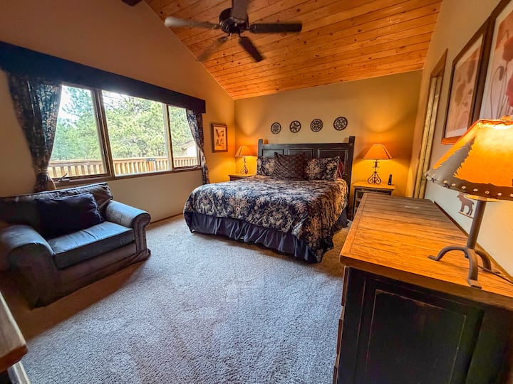 Deck: Step outside right onto the spacious deck, where you can relax and take in breathtaking views and frequent wildlife sightings. Or gather around the inviting outdoor fire pit, ideal for roasting marshmallows and unwinding beneath the starry sky.