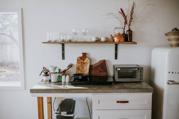 The guest house, we affectionately call the Villa, is situated near great views, restaurants, wineries, and nature trails available in Jacksonville, Ashland and Medford. Located in the country with views of the famous pear orchards. We have designed the Villa to be a quiet retreat that offers some unique features, so please familiarize yourself with our Property and House Rules. Every detail invites you to slow down and enjoy the beauty of Southern Oregon. Find us on socials: @thegreenwoodvilla