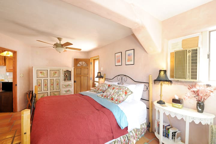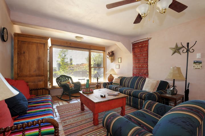 I'm a semi-retired artist enjoying life in my dream home in Santa Fe. I love to garden, bake, create beautiful things, and spend time with my 3 Norwegian Elkhounds. My spouse, and co-host, is a hiking addict and loves to share his passion with others. He will be happy to share hiking options with you. Together we enjoy eating out in SFs wonderful restaurants, going to movies, and ending the day on our deck watching the beautiful NM sunsets.