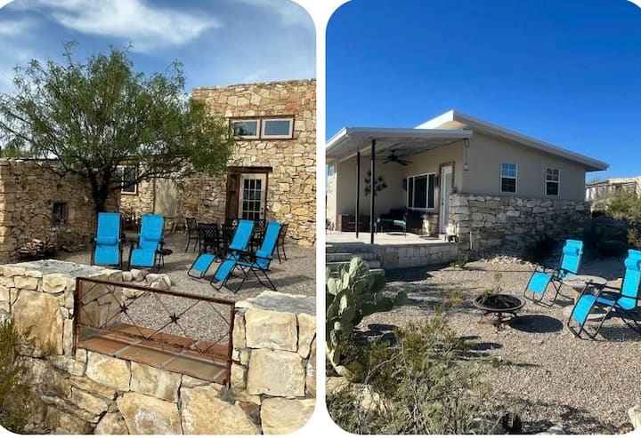 Two restored miner's dwellings connected by a short path in the historic Terlingua Ghostown. A short 8 miles to Big Bend National Park entrance, 11 to BB Ranch State Park & 3-minute walk to the Starlight Theatre & “the porch”. Offers easy access, all-weather road, full kitchen, firepit, wifi, water/electricity, ac/heat & generator for occasional power outages. Plus, more restaurants, bars, coffee, gift shops & art galleries nearby. Hosted by long-time locals who can offer helpful insights.