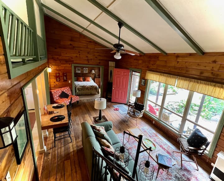 Surrounded by peaceful lush gardens & located in the heart of downtown Quincy, the Haiku Cottage is a true retreat designed for rest and relaxation. The cottage features a queen bed, a queen pull-out sofa, and a cozy double conversion in the loft, offering flexible and cozy sleeping arrangements. Step outside to the private patio & unwind in the soothing aesthetic that makes this calming cottage perfect for a romantic escape, an outdoor adventure or professional traveler.