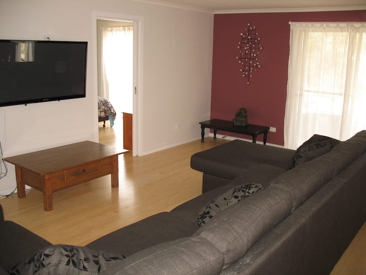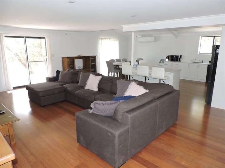 This spacious, air-conditioned home offers year-round comfort for your perfect getaway. Boasting 5 generous bedrooms and a sofa bed in the lounge, the property comfortably accommodates up to 15 guests. Designed with gatherings in mind, the home features a large open-plan lounge, kitchen, and dining area, ideal for hosting and relaxing. Additional conveniences include a laundry and bathroom downstairs and a private en-suite in the main bedroom upstairs. Stay connected with free high-speed Wi-Fi and unwind with a wide selection of Netflix channels on the large-screen TV in the lounge.