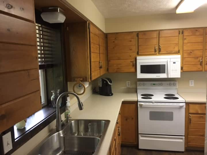 The firepit, alfresco dining, bbq area, and outdoor seating are great for summer trips.