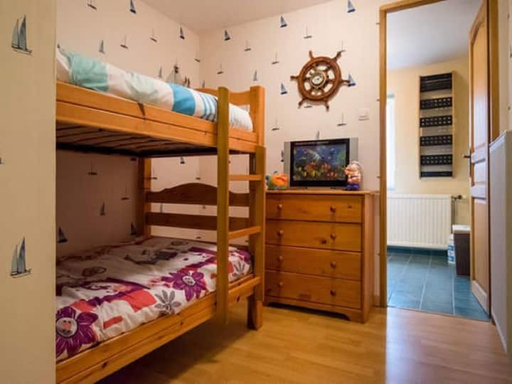 1 sofa bed, 2 bunk beds
