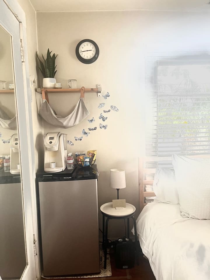 The room includes your own private bathroom (fancy!), but you’ll need to pass through the kitchen to reach it. Cool with that?